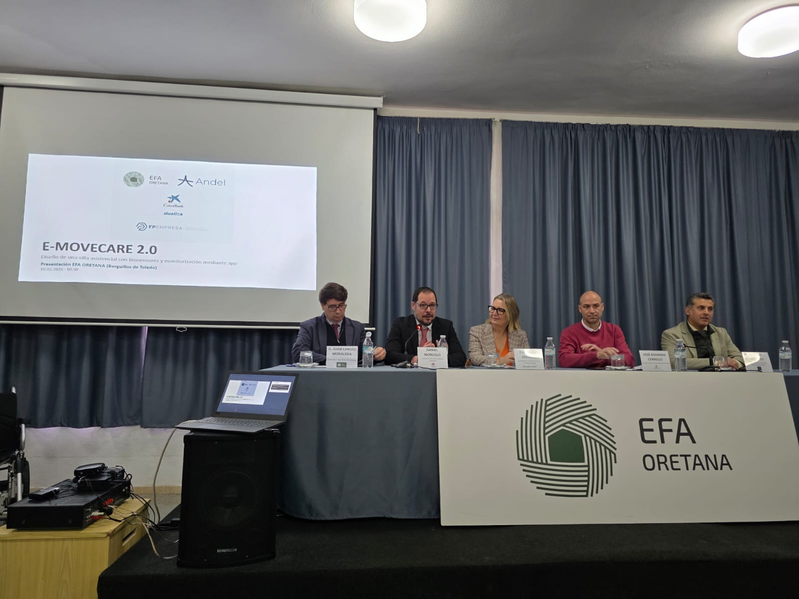 Este proyecto, seleccionado y apoyado en la IX Convocatoria de Ayudas Dualiza impulsada por CaixaBank Dualiza y la Asociación FPEmpresa, fue presentado oficialmente el 13 de febrero de 2026 en EFA Oretana, con la presencia de autoridades educativas y representantes institucionales. E-MOVECARE 2.0 combina tecnología IoT, sensores biomédicos y una app de gestión de datos para monitorizar en tiempo real constantes vitales, parámetros de uso y alertas de seguridad. El prototipo se ha validado y testeado en entornos reales, como residencias sociosanitarias, demostrando un impacto directo en la calidad de vida y la atención personalizada.